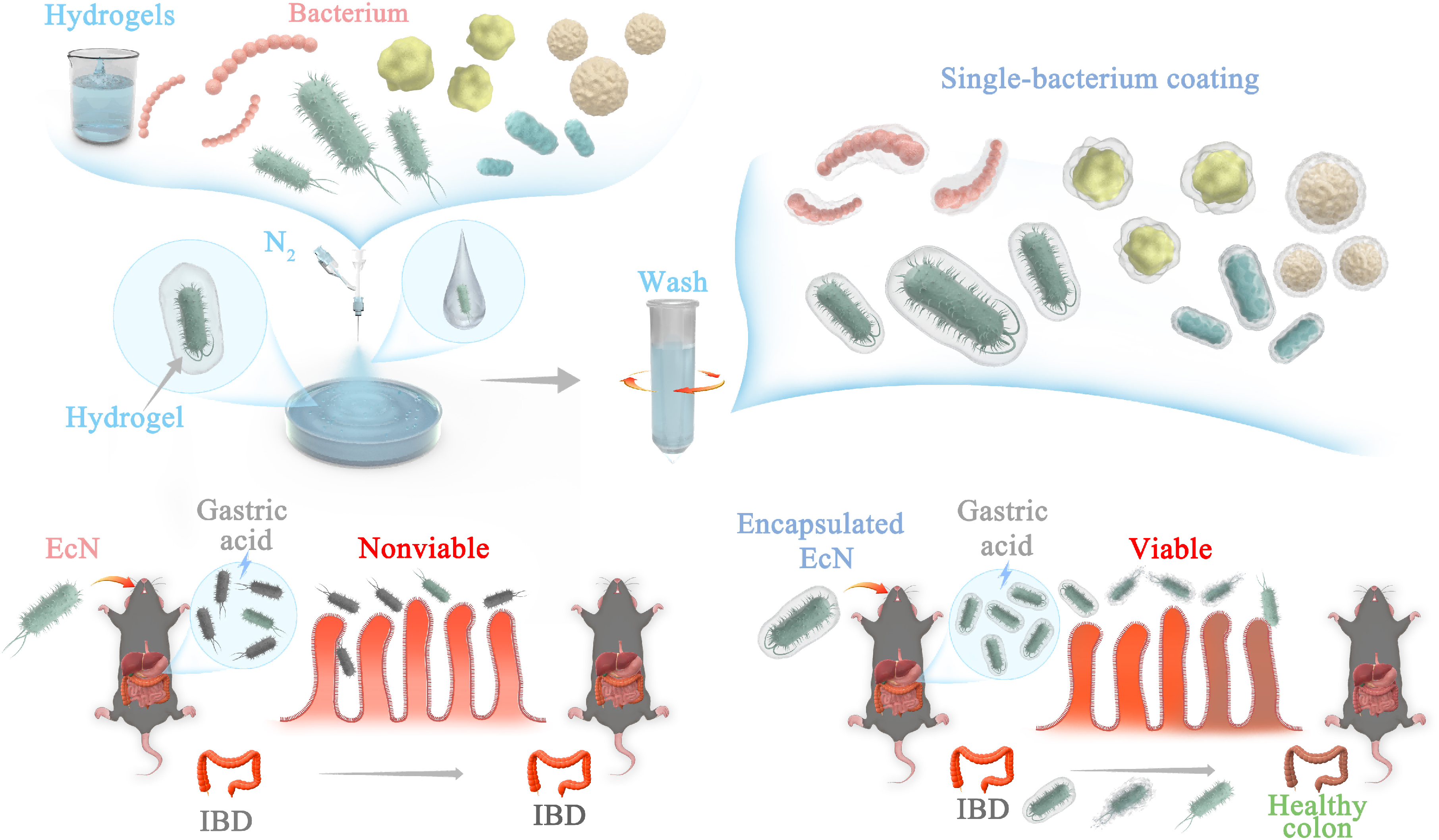 Jialin Wu, Lili Wu, Ruiying Liu, Leyan Xuan, Jiamin Qian, Chenchen Fang, Huaibin Wang, Jie Guo, Lingran Du, Yingling Miao, Bin Liu*, Yutao Liu* and Guosheng Tang*. Fabrication of Single-Bacterium Microgel with Gas-Shearing Strategy for Precision Probiotic Delivery in IBD Therapy. Research, 2025, 8, 0955.