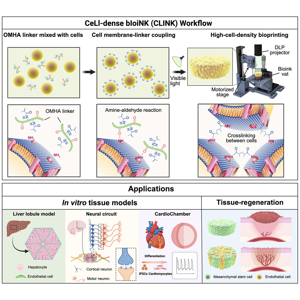 Mian Wang, Wanlu Li, Jin Hao, Ling Cai, Xuan Mei, Regina Sanchez Flores, Penélope Cerόn Castillo, Carlos Ezio Garciamendez-Mijares, Xuan Mu, Xiao Kuang, Xianbi Yu, Jugal Kishore Sahoo, Guosheng Tang, Zeyu Luo, Guillermo Wells, Zhongmin Liu, Alfredo Quiñones-Hinojosa, Kevin Eggan, Shaorong Gao, Yu Shrike Zhang*. Biomaterial-Minimalistic Photoactivated Bioprinting of Cell-DenseTissue Architectures. Cell, 2026, 189, 1–17.