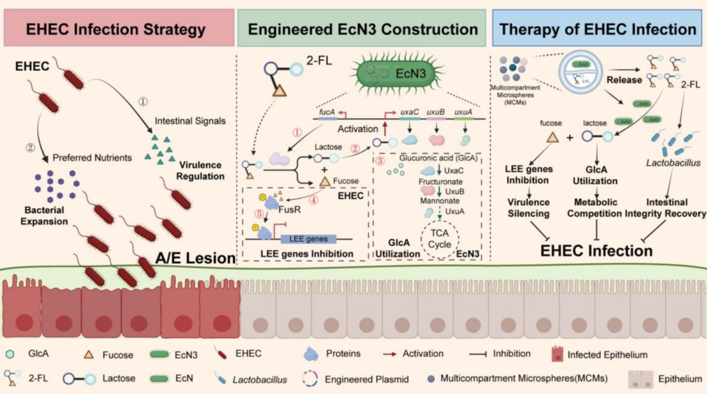 Guozhen Ma, Ruiying Liu, Xueping Li, Jialin Wu, Yuanyuan Niu, Sheng Wang, Ziwei Chen, Xudong Qin, Qian Wang, Junyue Wang, Jiamin Qian, Mingqing Zhang, Yu Pang, Guosheng Tang*, Tao Wang*, Yutao Liu*. Engineered Bacteria Enable Dual-Mechanism Therapy for Enterohemorrhagic E.coli Infection via Carbon Source Competition and Virulence Gene Silencing. Nature Communications, 2025, In Press.